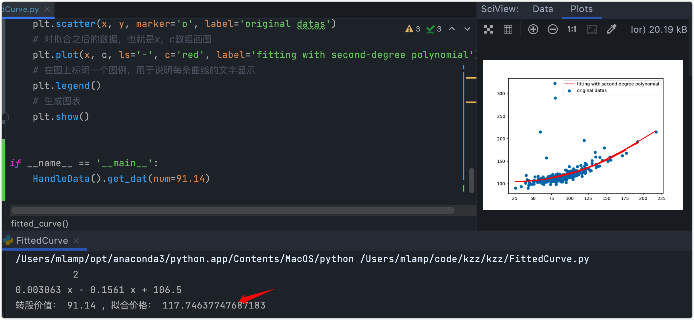 明天元力转债上市,用代码拟合曲线预测了一下:上市价117.75元。