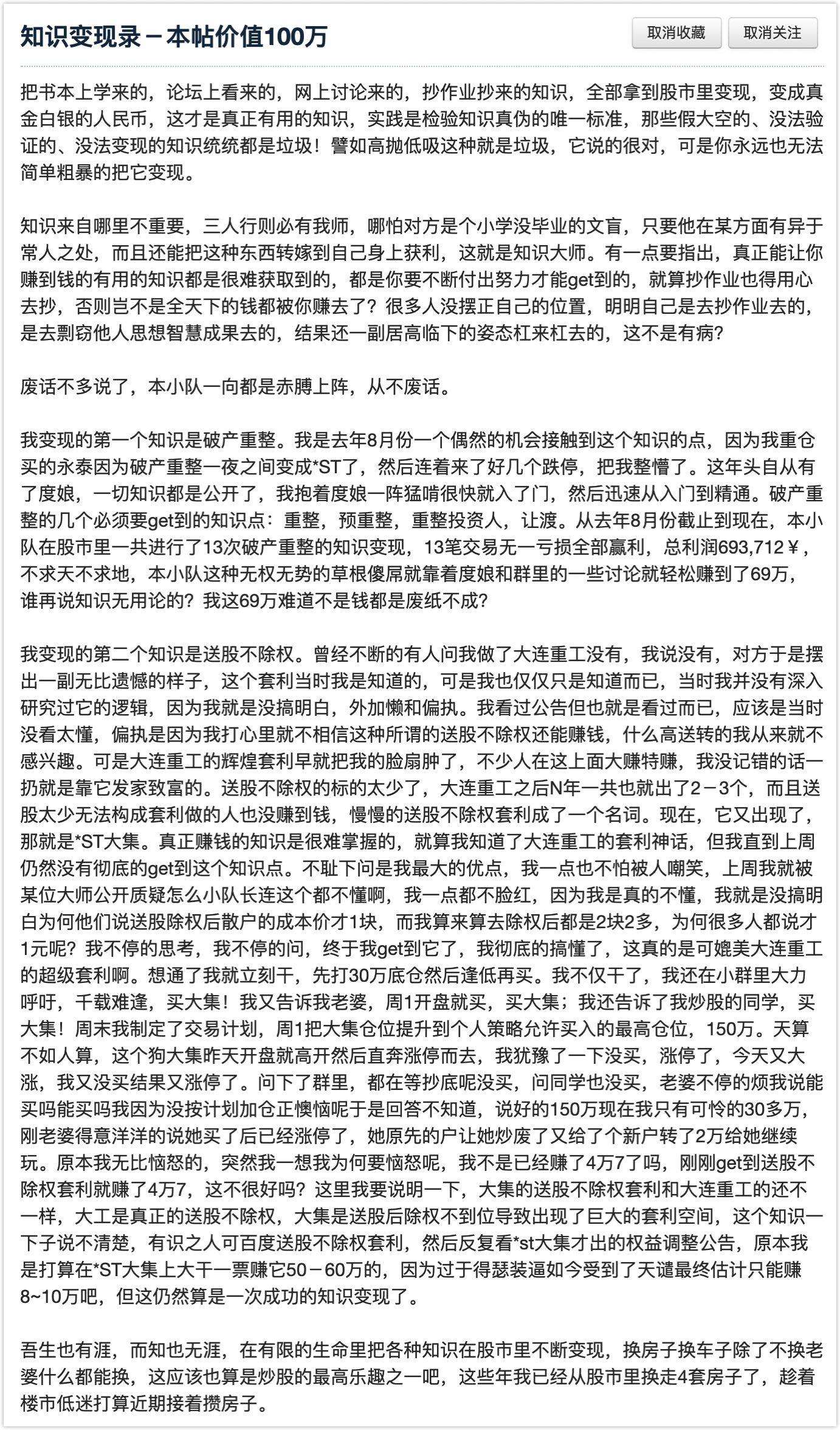 前两天在集思录看到一个帖子:知识变现录-本帖价值100万