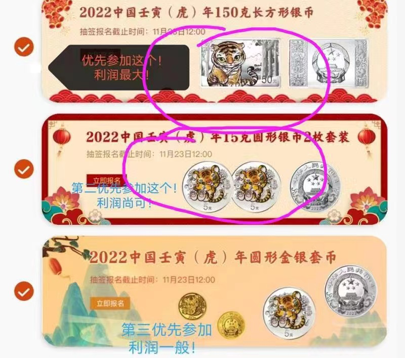 上次运气比较好,中了一个建党100周年金银套币,盈利7000元左右。
