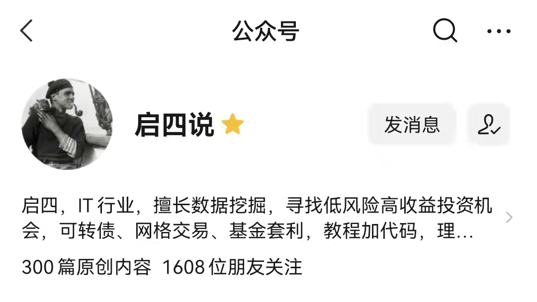 起初我写公众号,只是兴趣爱好。后来写着写着发现了可转债,并在它上面赚到了第一块钱,接着开始带动身边的亲友,操作可转债赚钱。