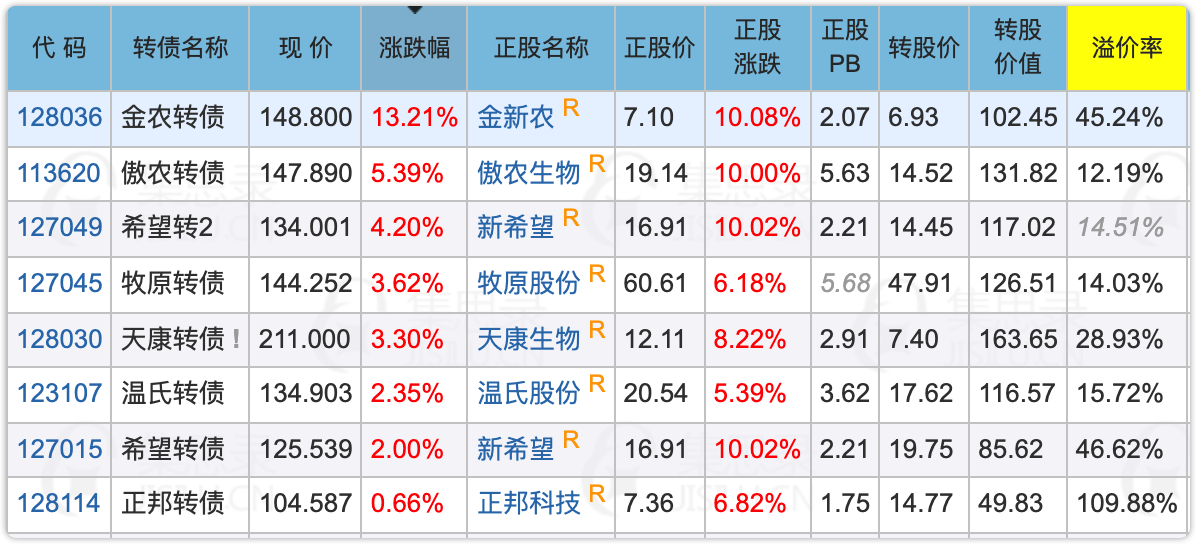 妖债带头大哥还是卡倍转债和泰林转债,昨天预测的设研转债、中大转债、奥飞转债今天盘中也有所表现,尤其是奥飞转债,盘中最高大涨18%。