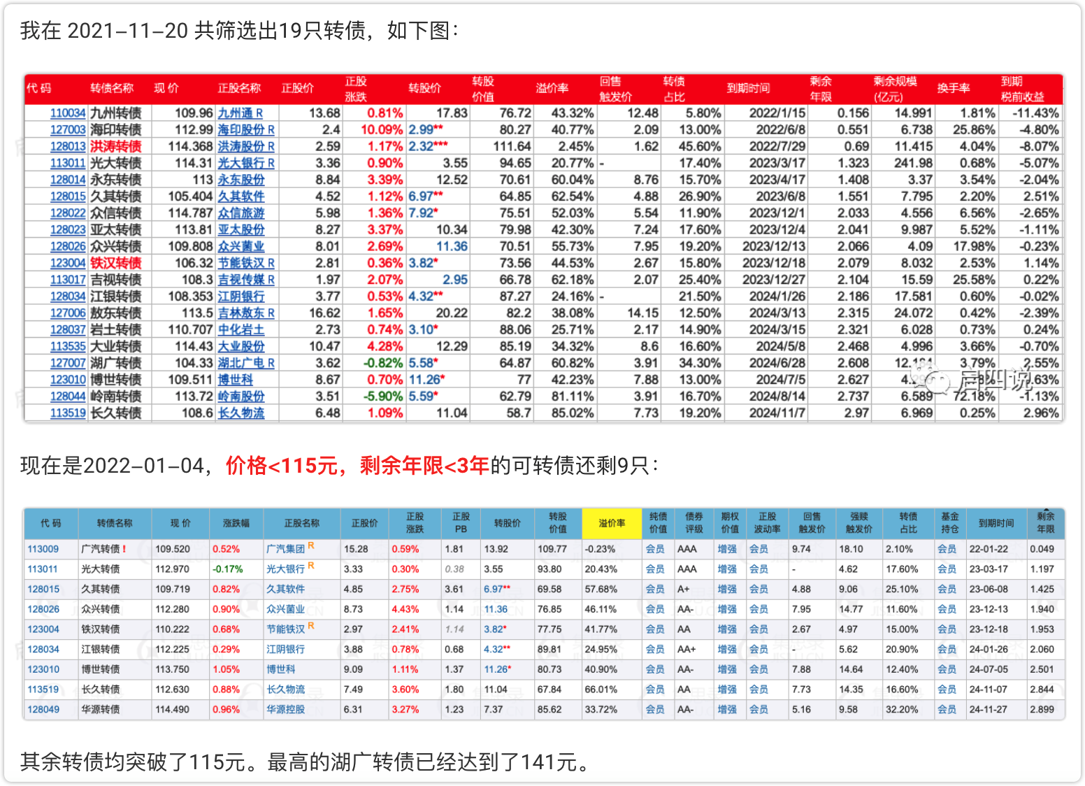 所以选择115元以下的转债,下跌空间有限,持有体验很好。