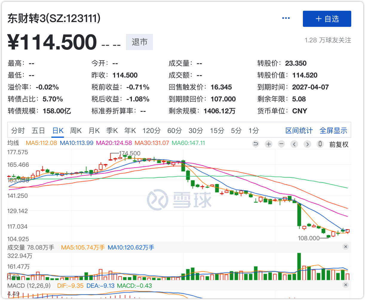 并且大部分散户没有创业板转股权限,行情不佳,恐慌抛售,东财转3一路向下。