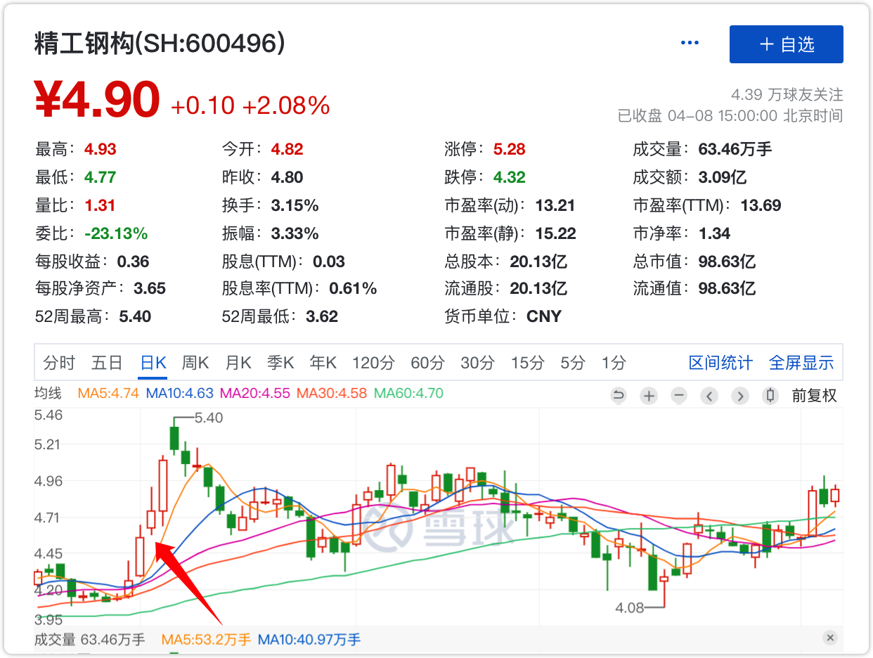 在提示之后,4.74元入手,一度有过13.9%的涨幅,达到5.4元,可是后面跌宕起伏,最低也有过13.9%的跌幅,达到4.08元。