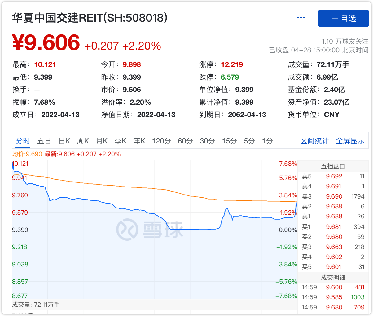 今天,中交REIT上市,没想到走势大大低于预期。