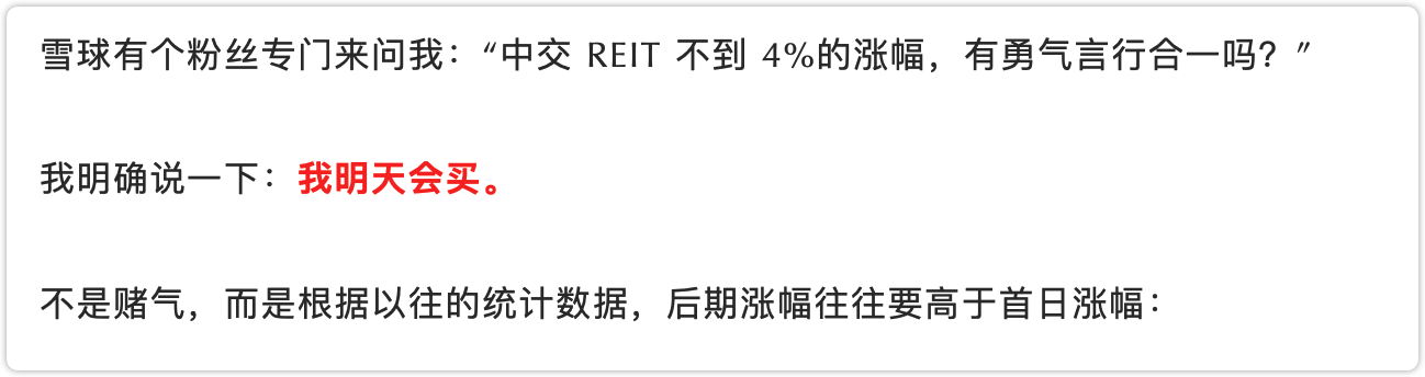 我在昨天的文章:3天吃肉13%!明天准备入手中交REIT中明确说了,我要抄底: