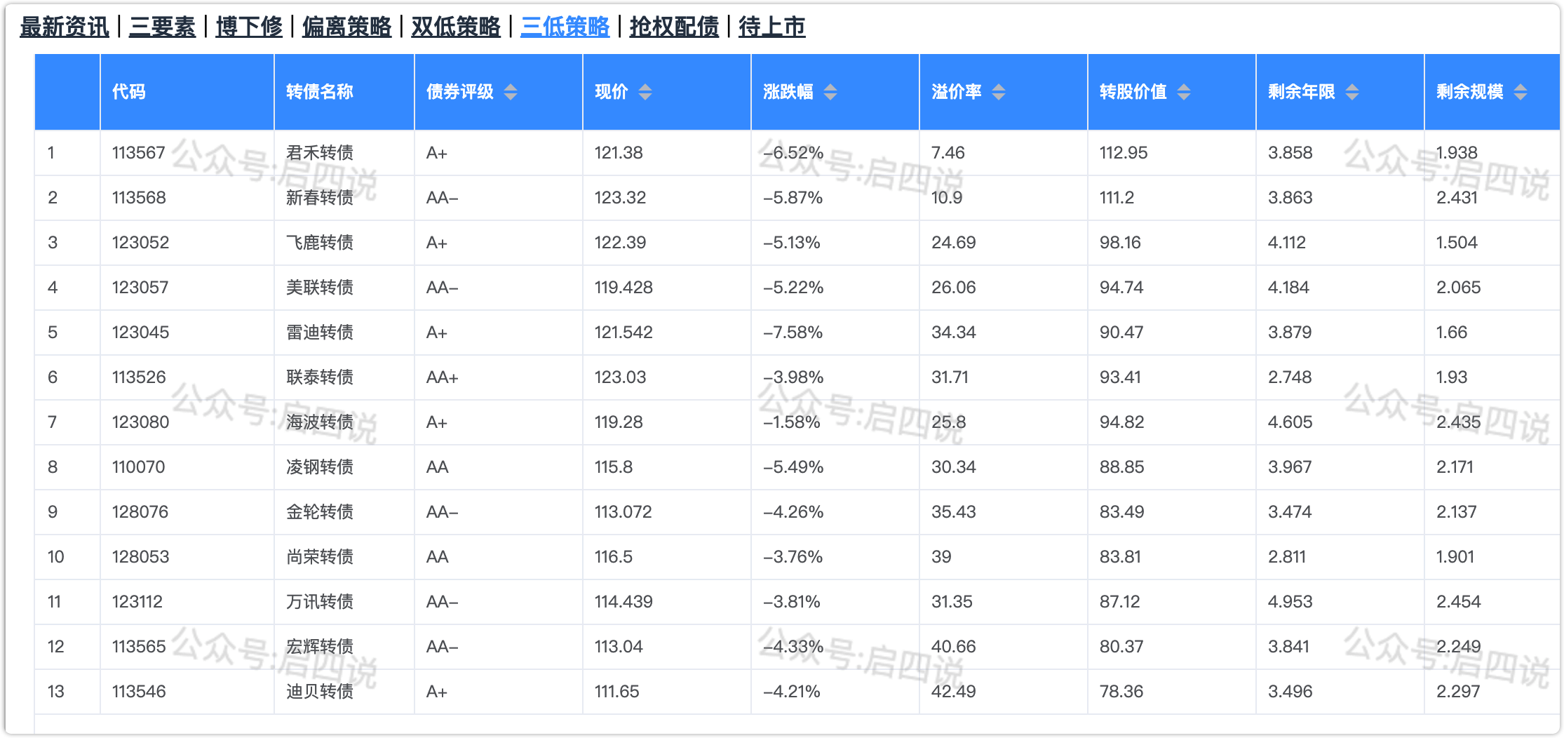 同步几个可转债的计算公式:
