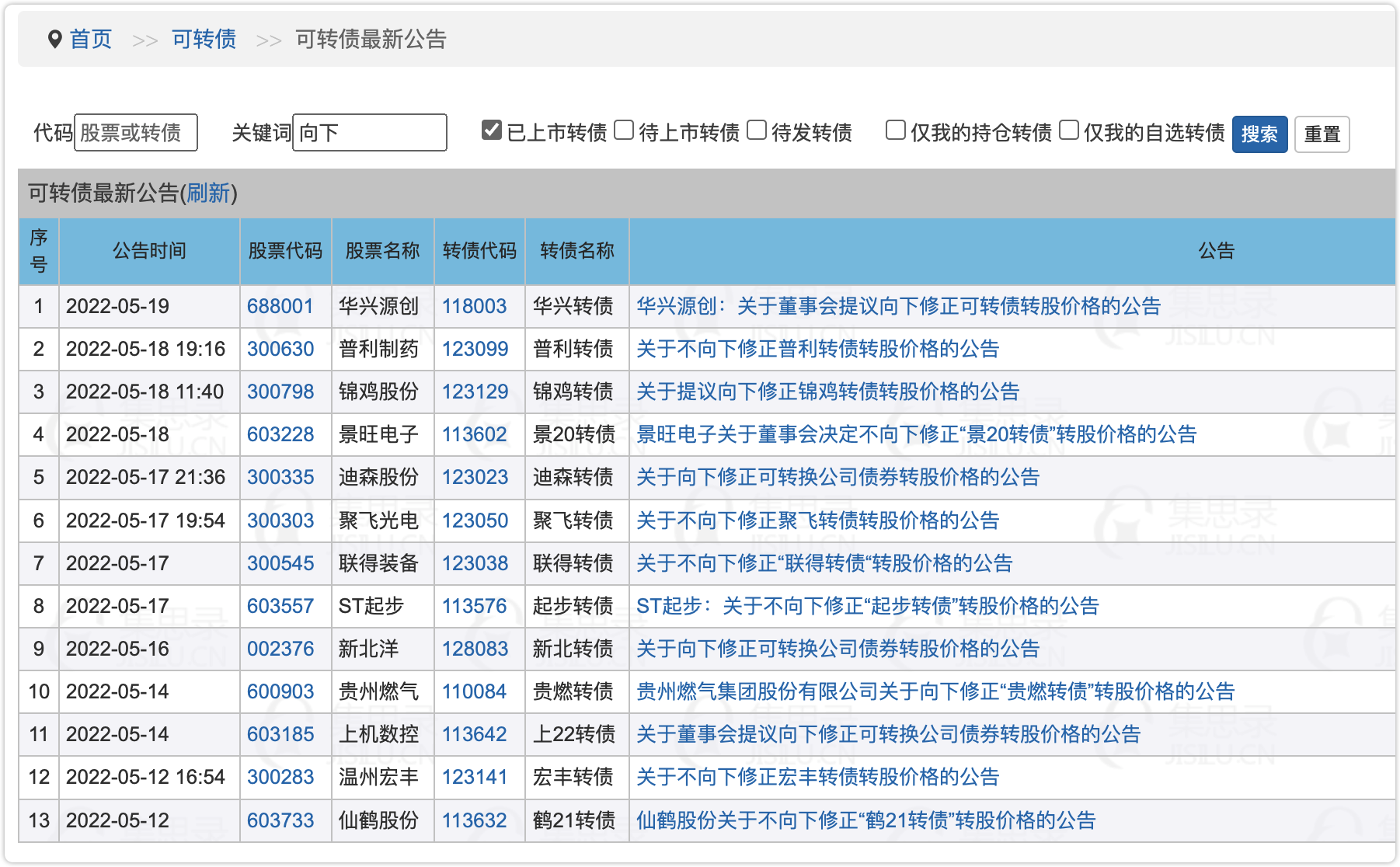 今天锦鸡转债、华兴转债公告下修。