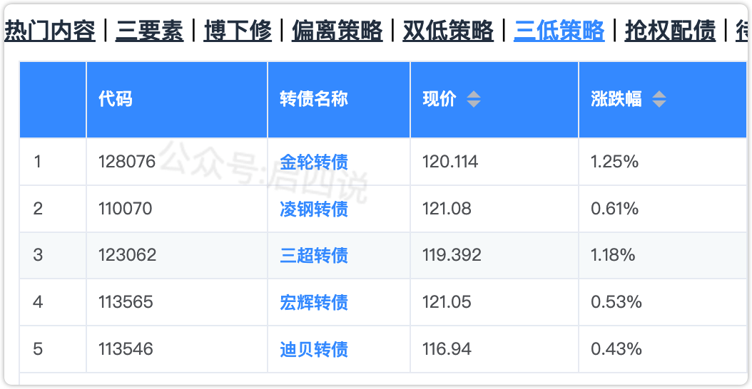 三低今天又是全红,只剩下5只了,其余均涨超125元。