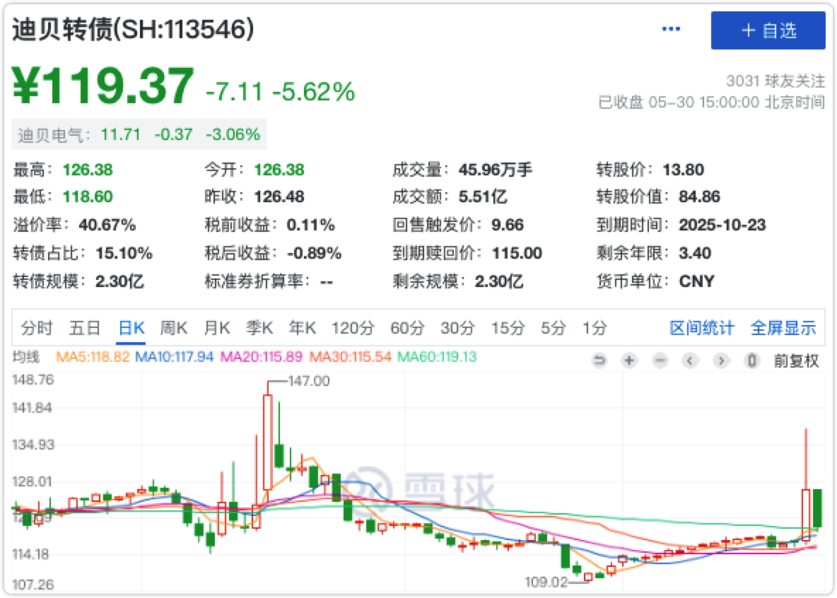 迪贝转债上周五起高楼,今天楼塌了,使用我的卖出策略,差不多刚刚好卖在最高点,今天迪贝又进入了三低名单,美滋滋地再接回来。
