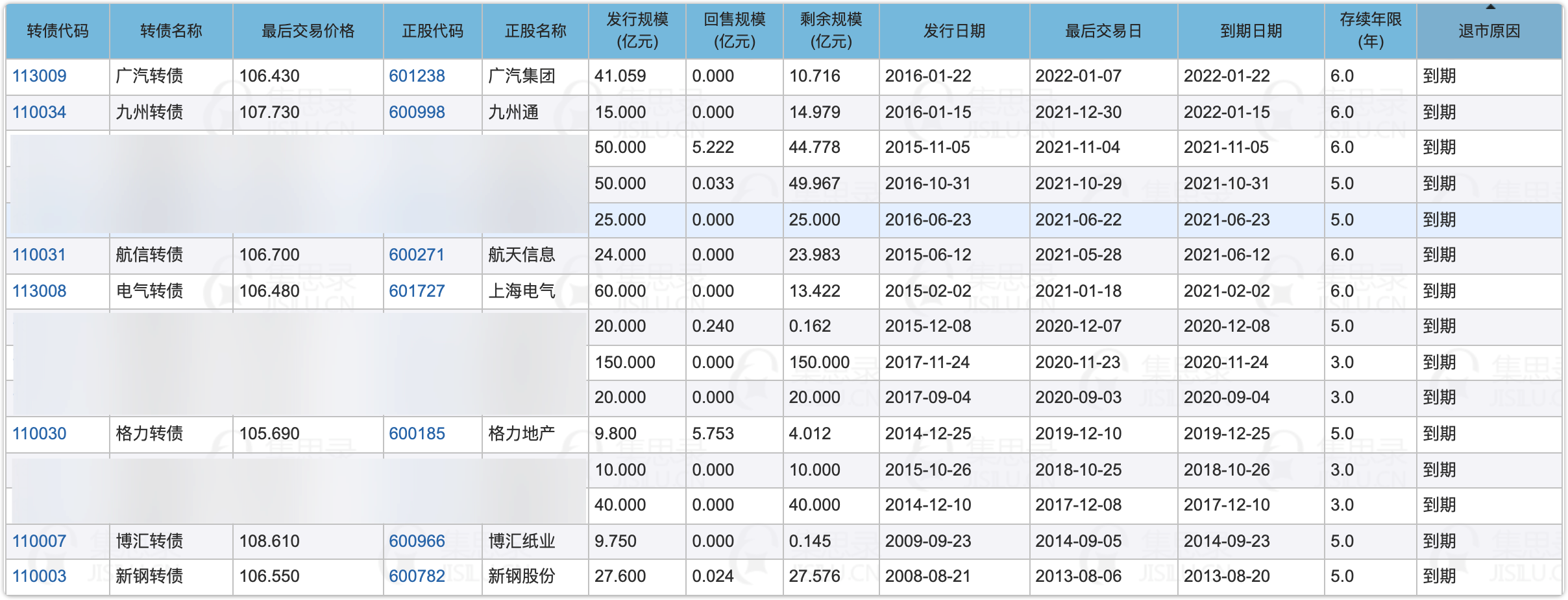 漫漫历史长河,算上最近的海印转债,到期未强赎的转债一共只有8只,占比3.5%左右