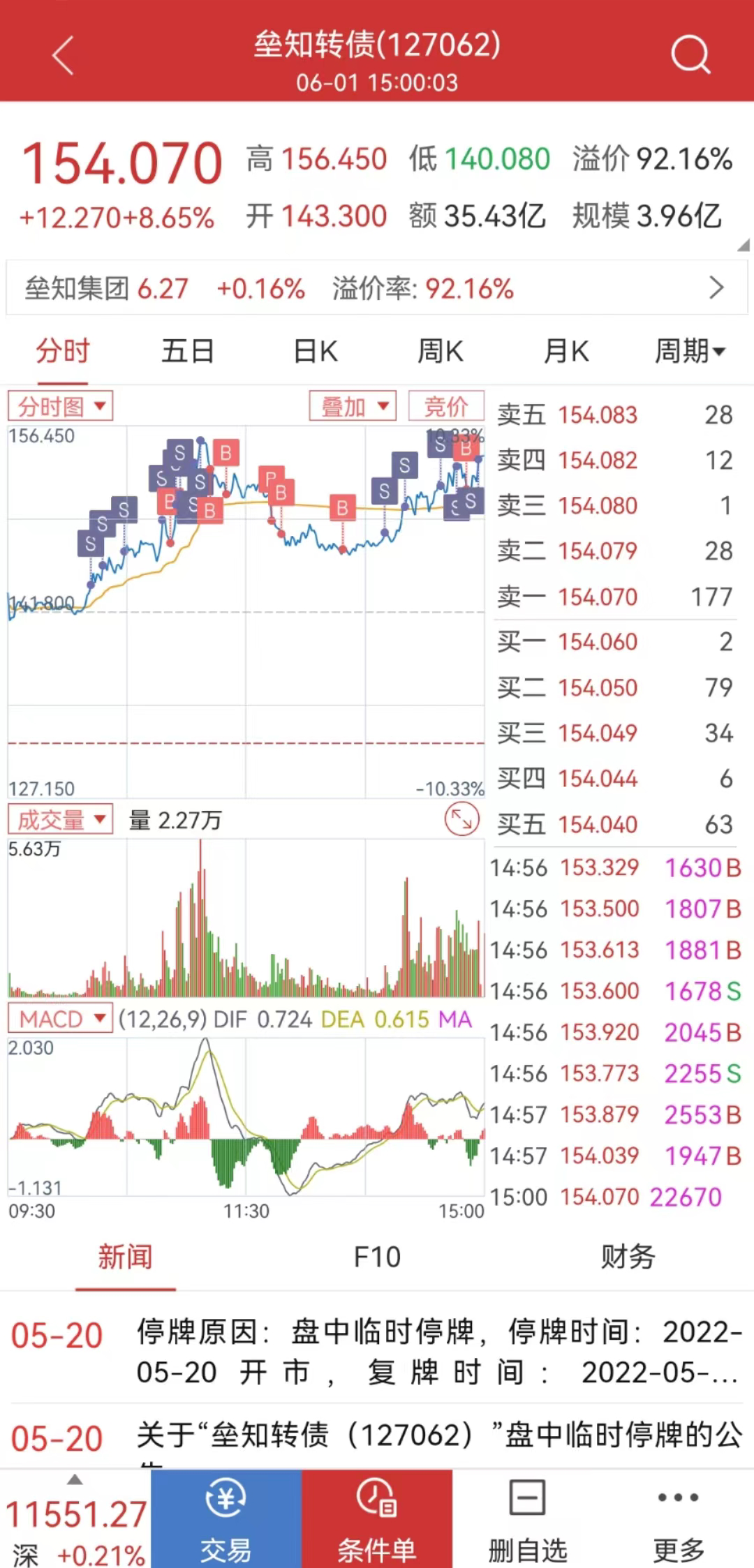 今天利用网格交易条件单疯狂收割了垒知转债,一手成本从上市首日的173.03元已经降到了131元。