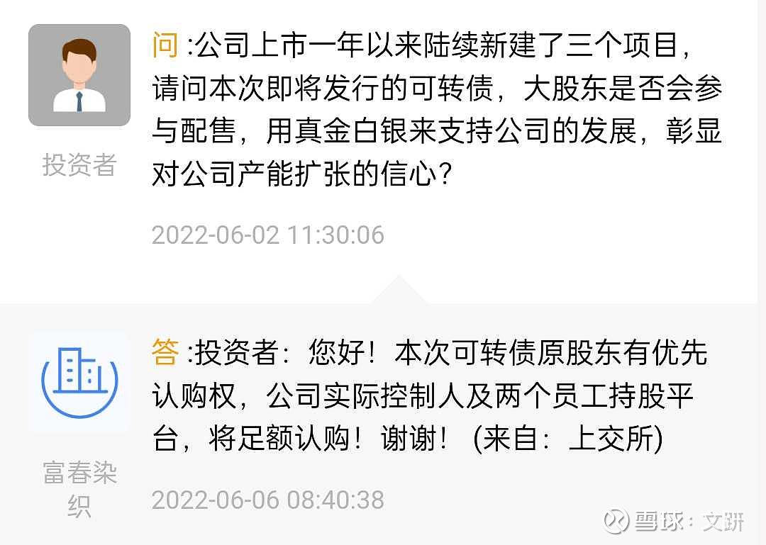 如果富春染织的大股东何培富能全额参与认购,转债流通份额就会很小,大概只有1.7亿左右,而且董秘已经明确说了其会全额认购。