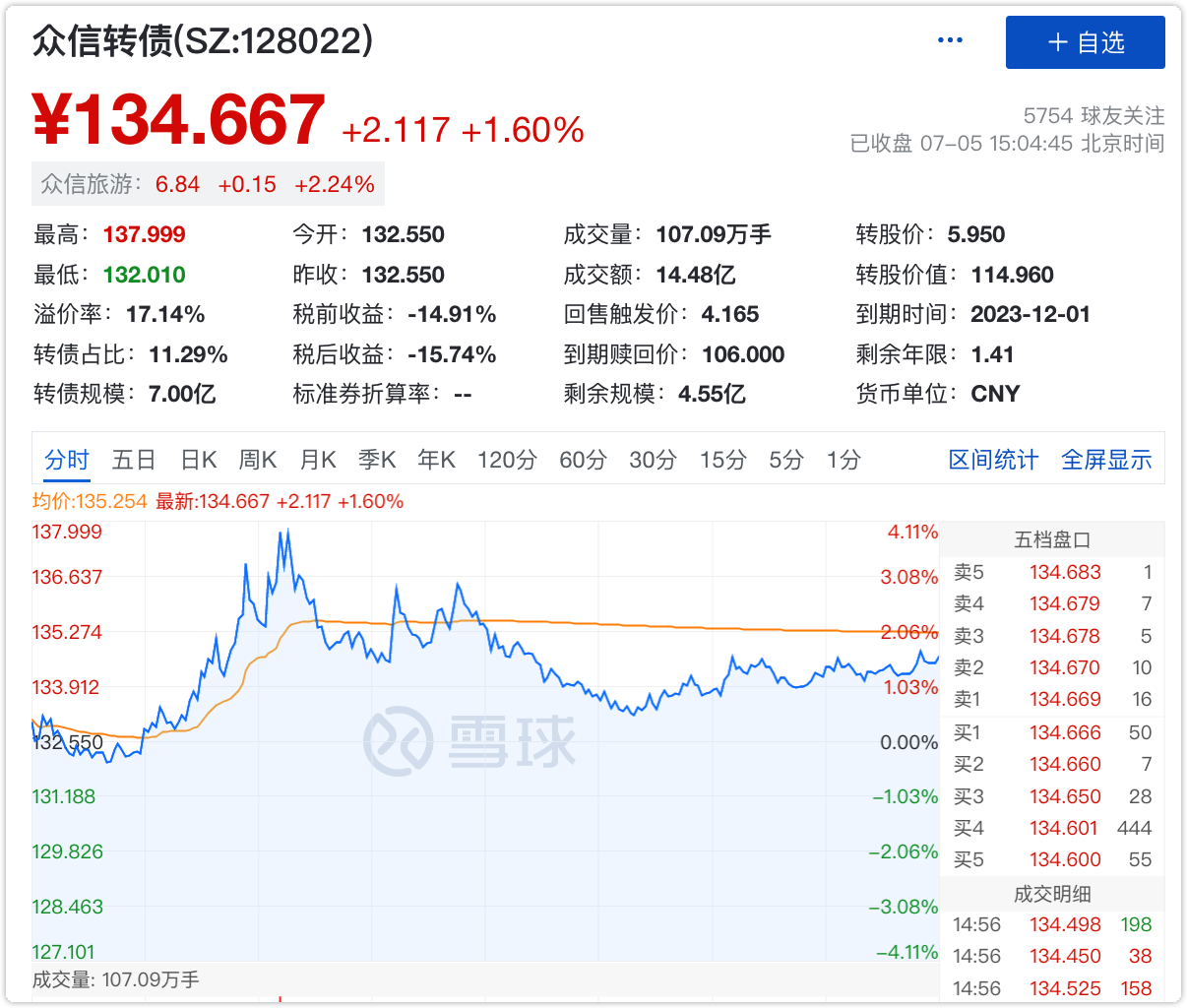 前些天132元左右入手的众信转债,今天也开始上冲了。