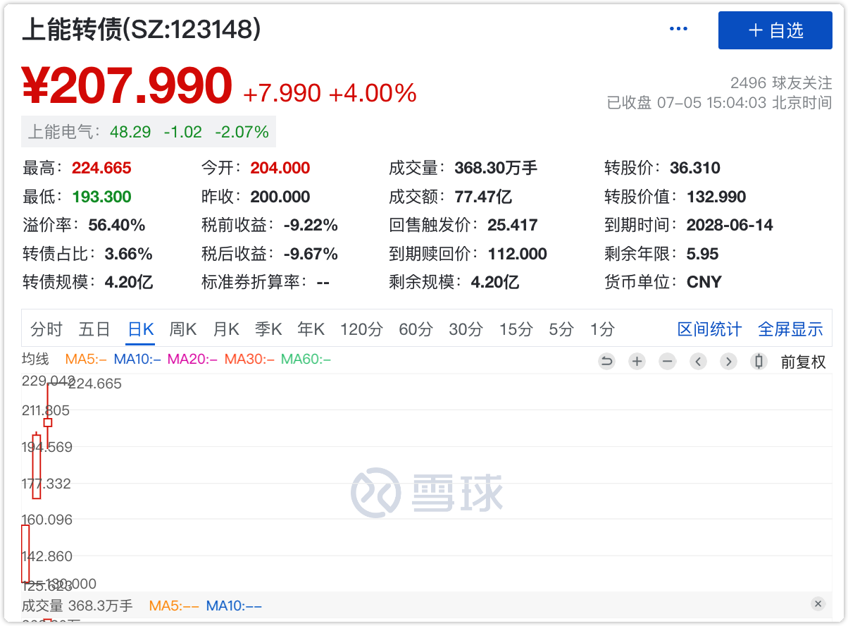当前溢价已经来到了56.4%,价格最高达到了224.665元。