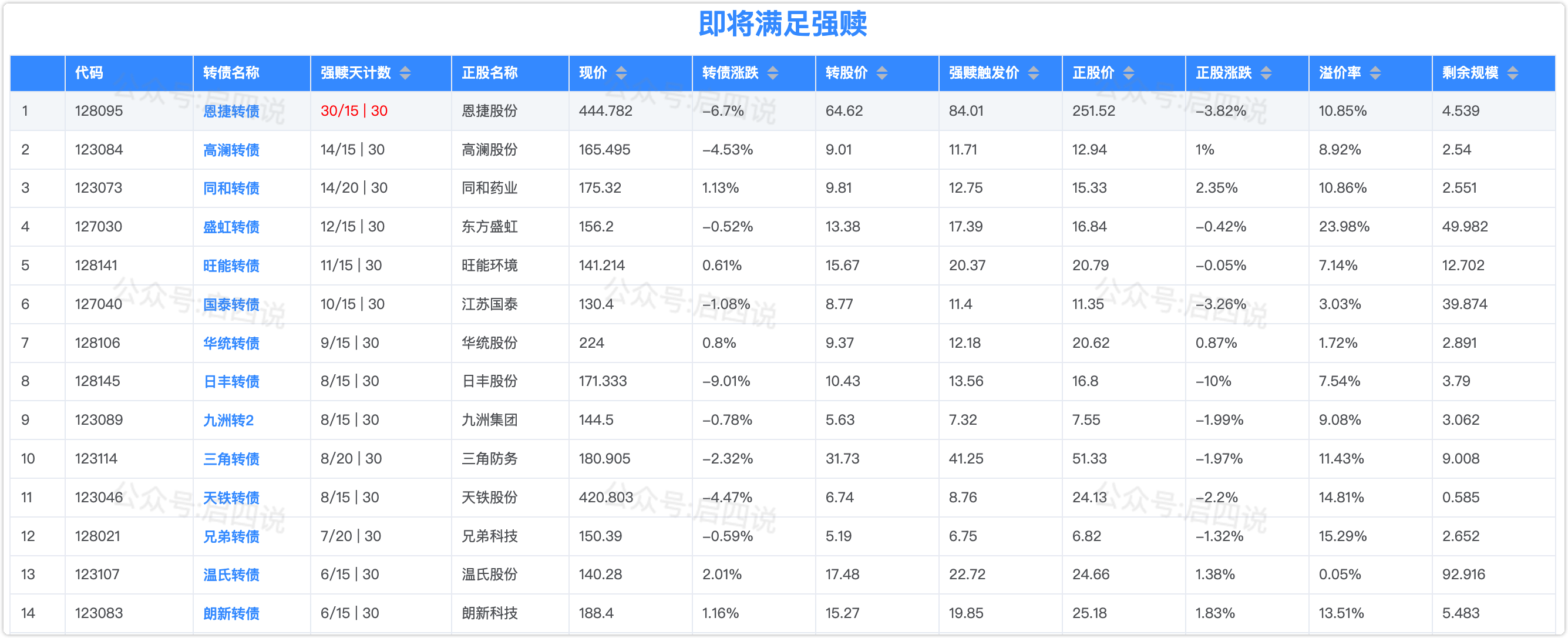 即将满足强赎的,关注强赎进度:
