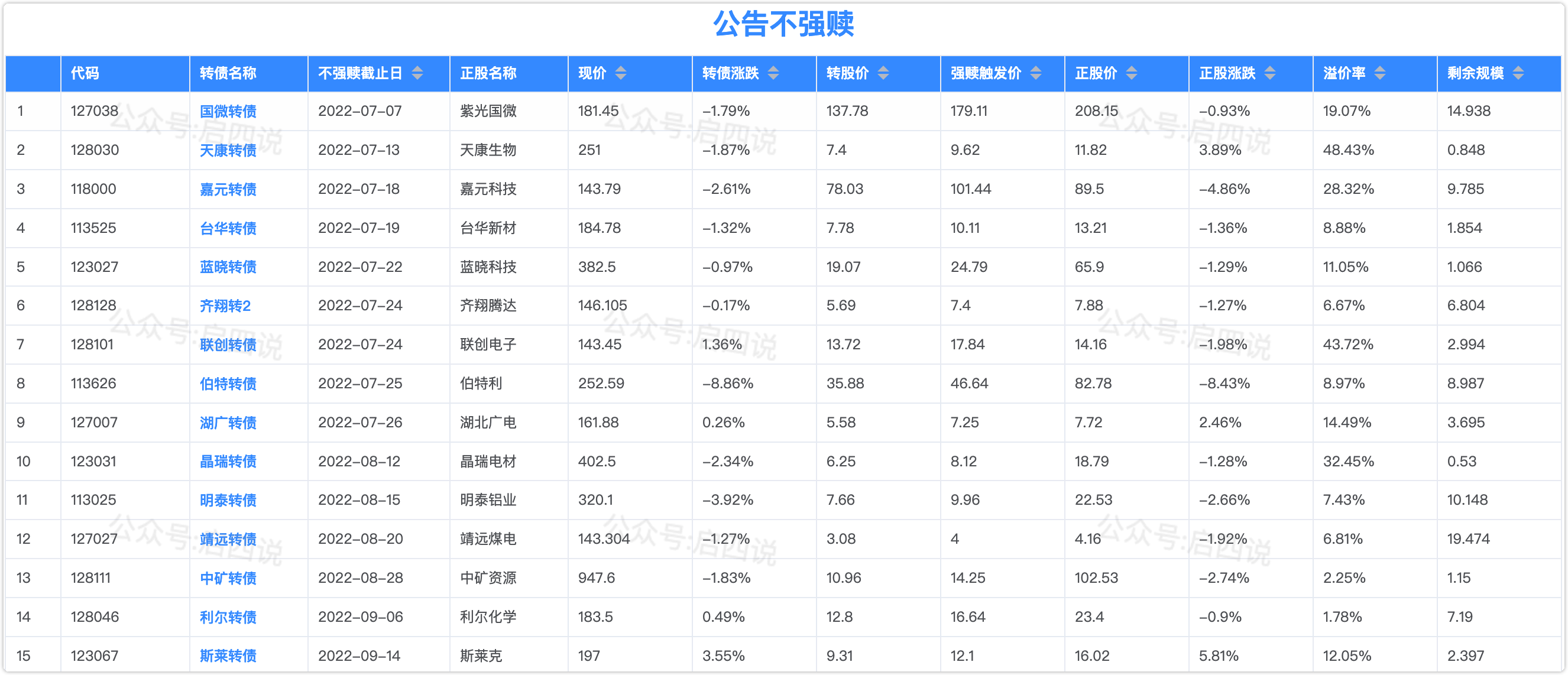公告不强赎的,要关注强赎截止日期: