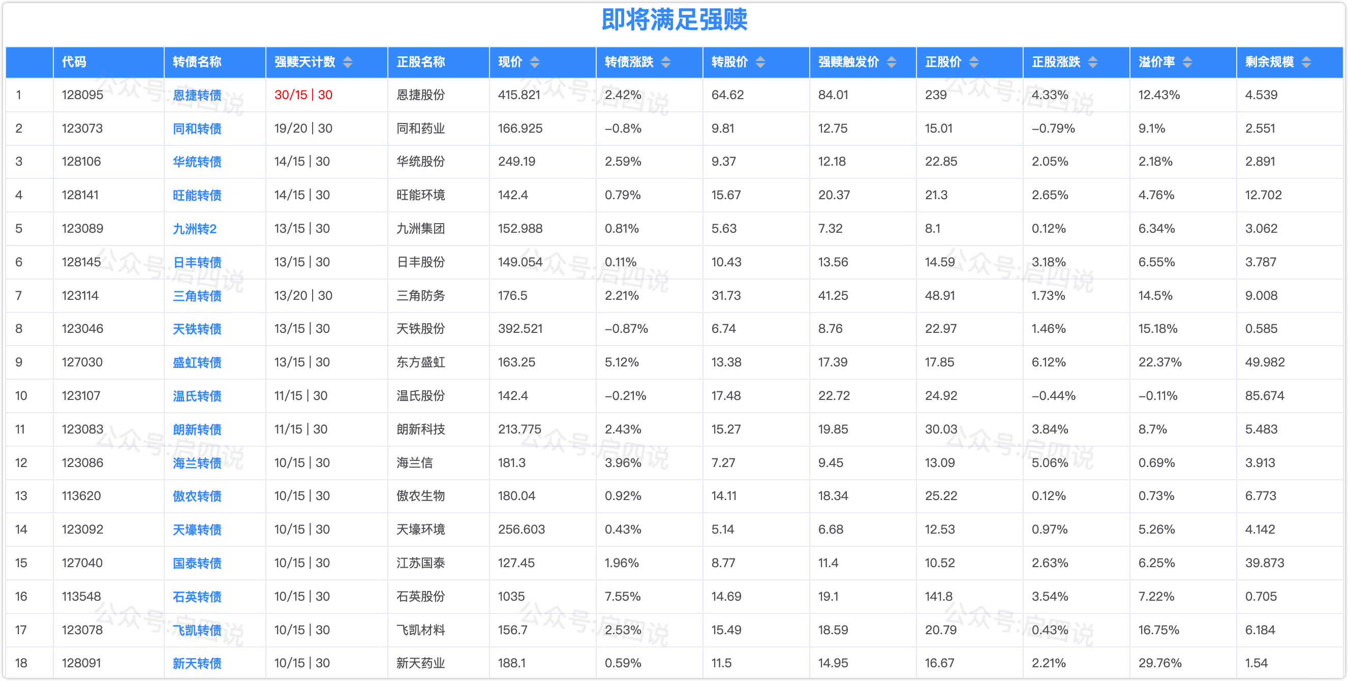 下面是强赎计数满足10天以上的转债,持有这些转债一定要小心了。