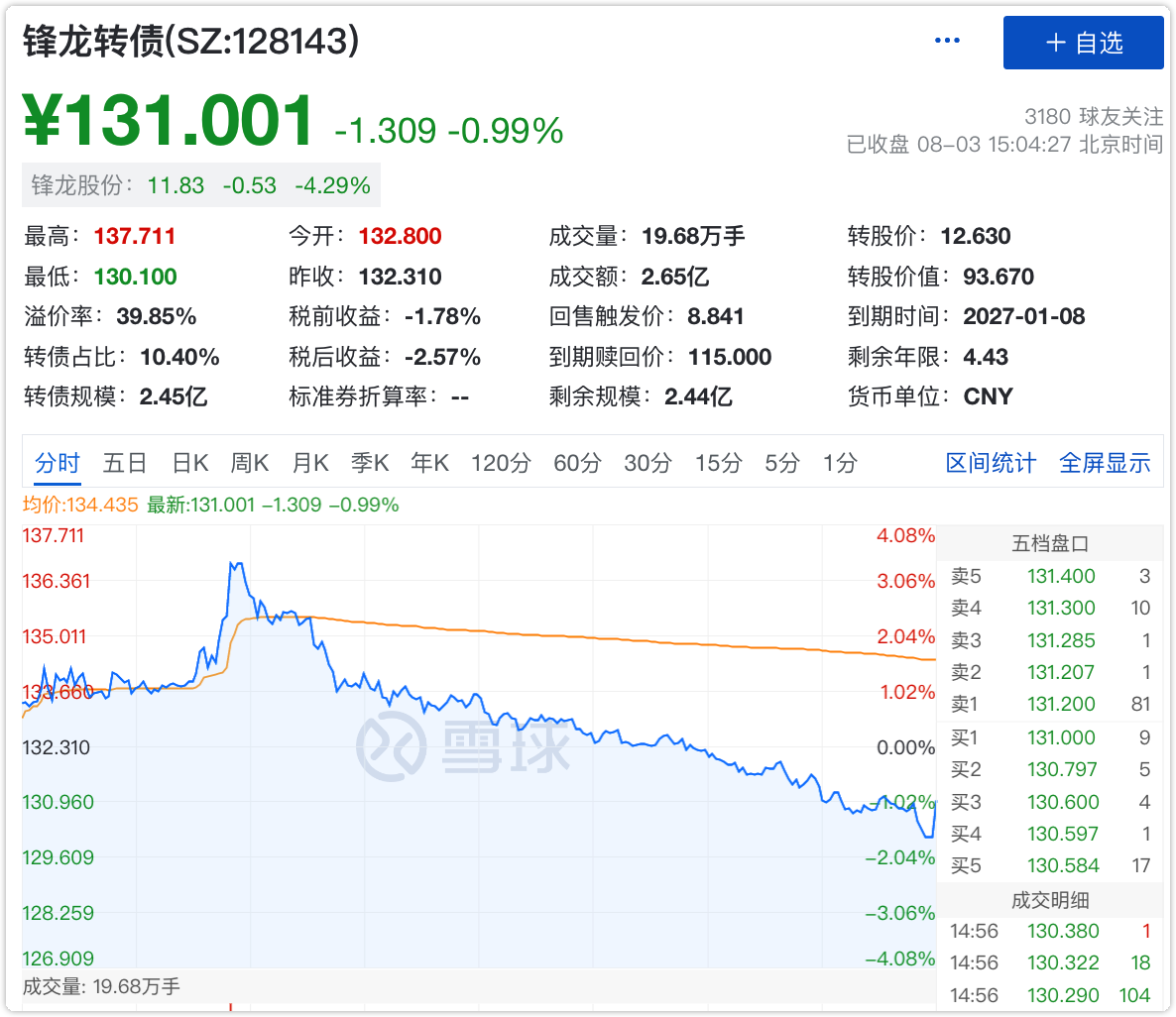 昨天在文章:加仓这些转债中提到了锋龙转债是老三低+汽车赛道,130-135元可以反复做波段。