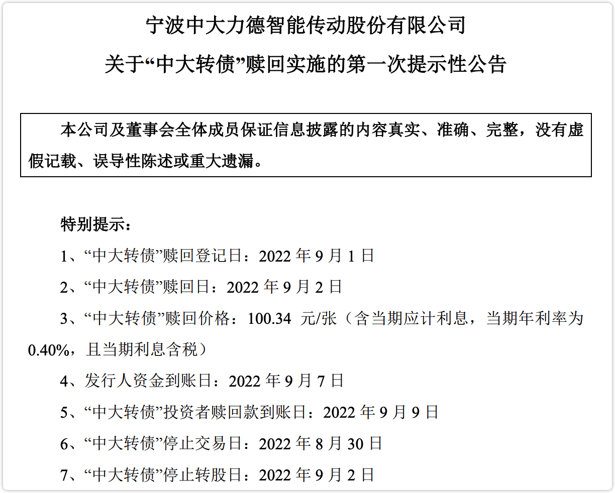 中大转债今晚公告了强赎,并且明确了最后交易日为2022-08-30。