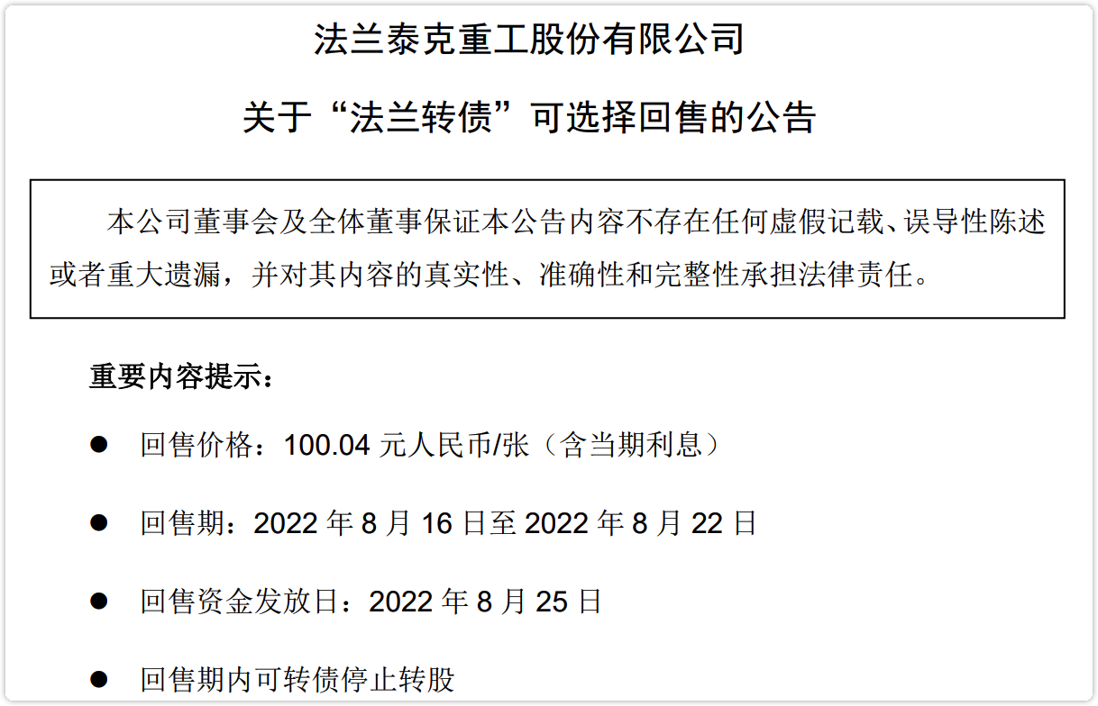 今天法兰转债一则回售公告引起了我的注意: