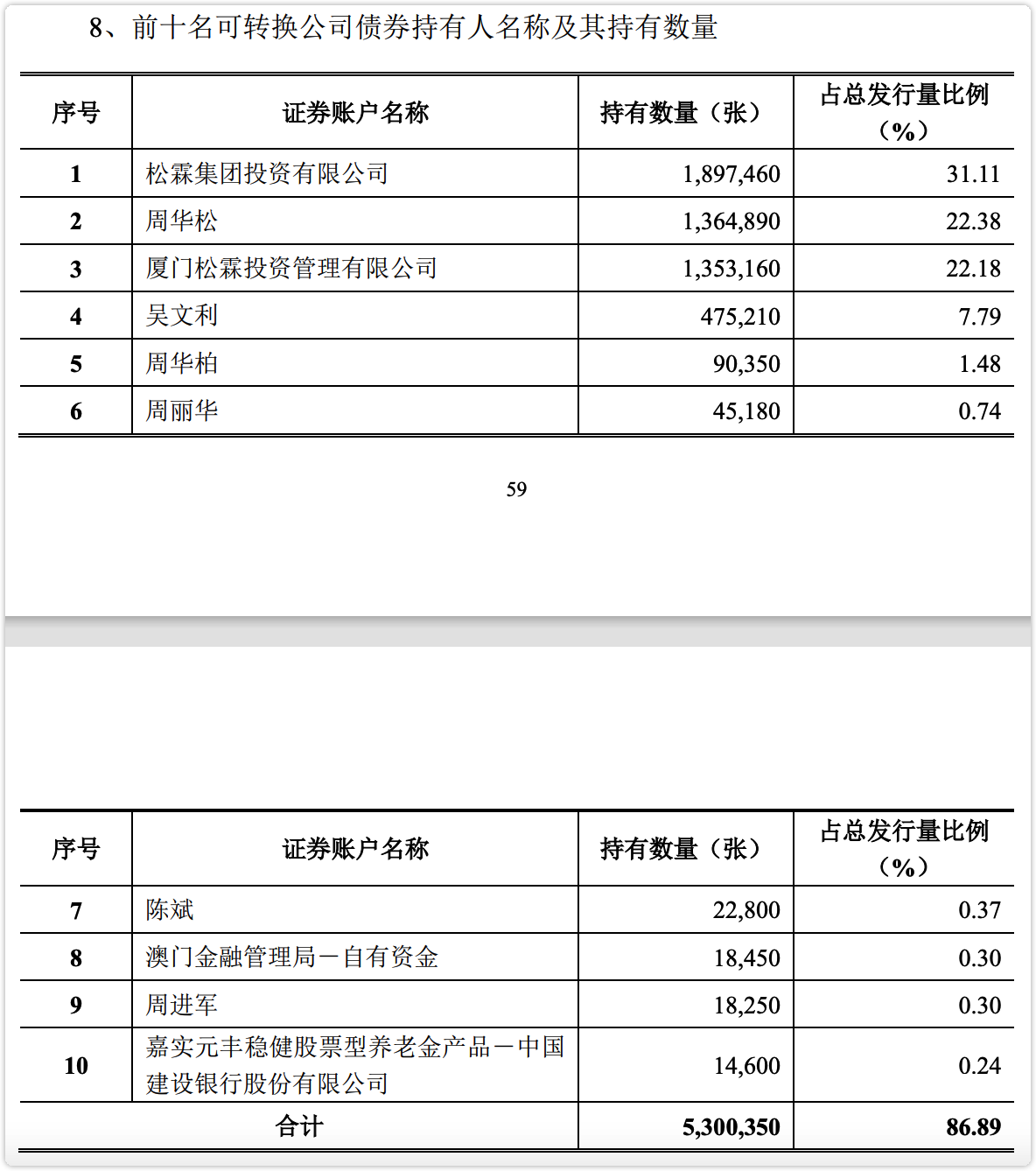 根据前十名可转债持有人的持有数量算了一下流通规模,**居然只有0.8亿。**大股东们丧心病狂地配售了86.89%的份额。