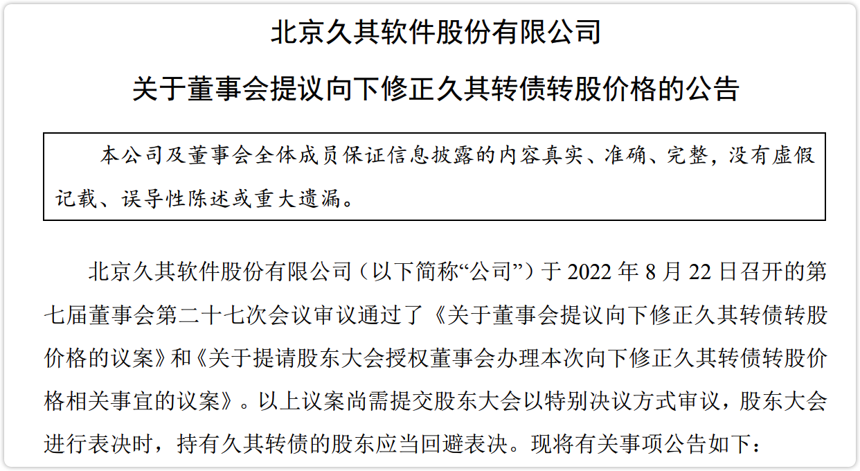 好消息来了!今晚久其转债公告提议下修。