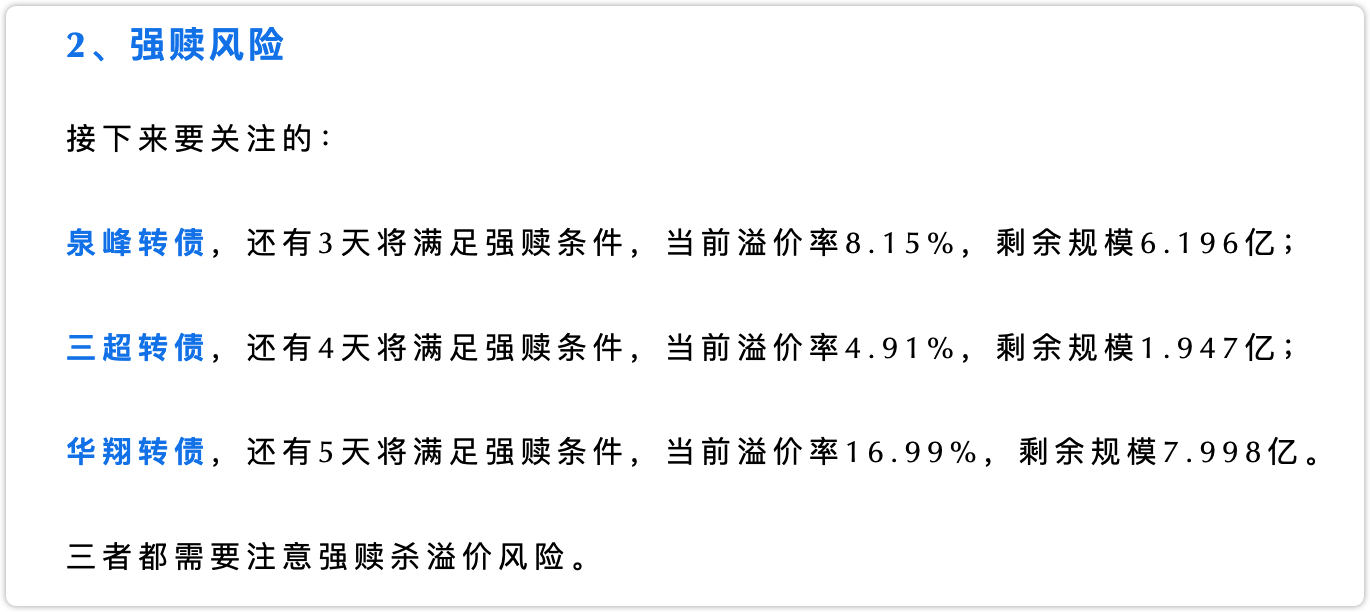 2022-08-17我在文章:这3只注意风险!中提醒了泉峰转债**、三超转债、**华翔转债,三者都需要注意强赎杀溢价风险。