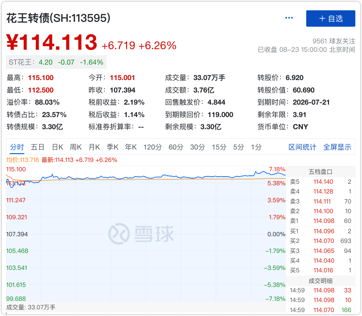 并且花王转债规模也不大、价格也不高,曾经妖过,有过单日52%+的涨幅。