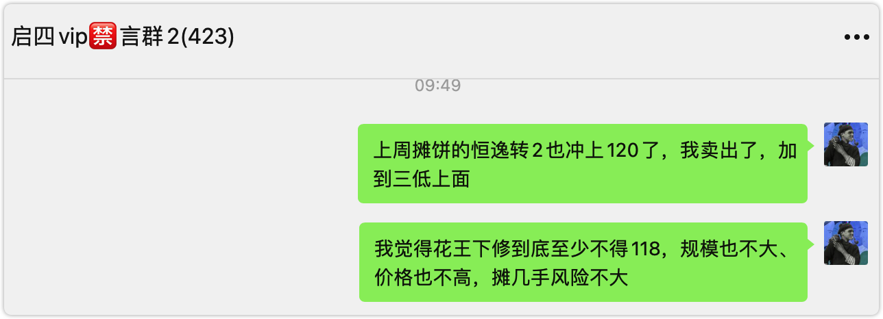 思来想去,还是觉得当前价格太低,摊几手风险不大,短期保守看到118元。