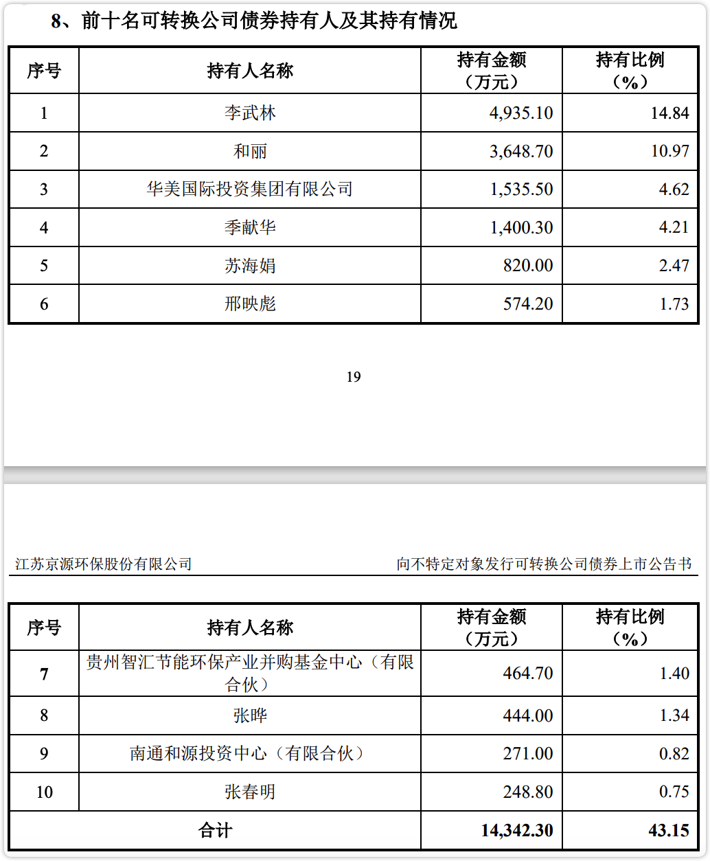 根据上市公告书中前十名可转债持有人的持有数量算了一下流通规模,大概1.9亿。