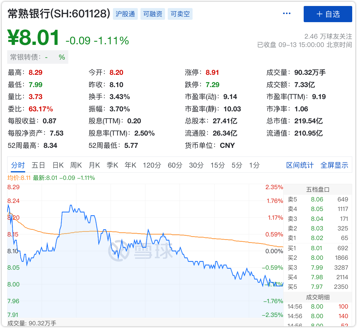 今天常熟银行开盘前提示了提前止盈,盘中仅仅微跌,没有选择抄底,明天继续关注。