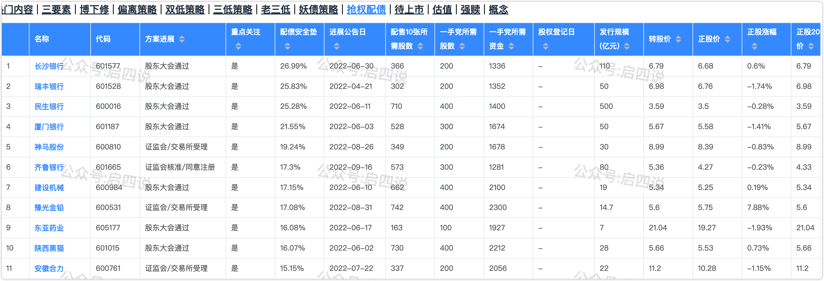 分享一组抢权配债数据,以下转债目前的安全垫经插值拟合预测在15%以上。