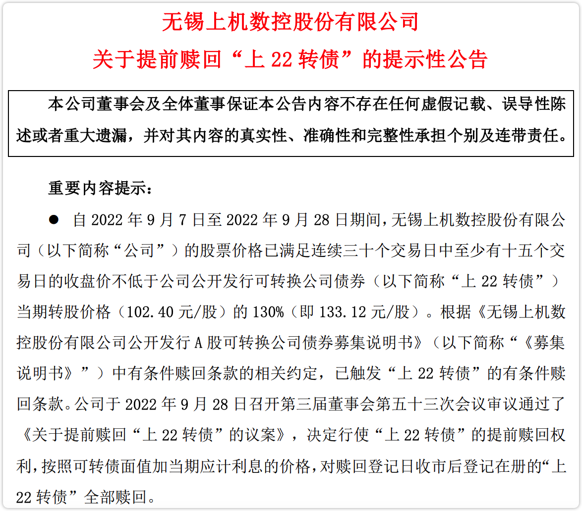 上22转债今晚公告了强赎。