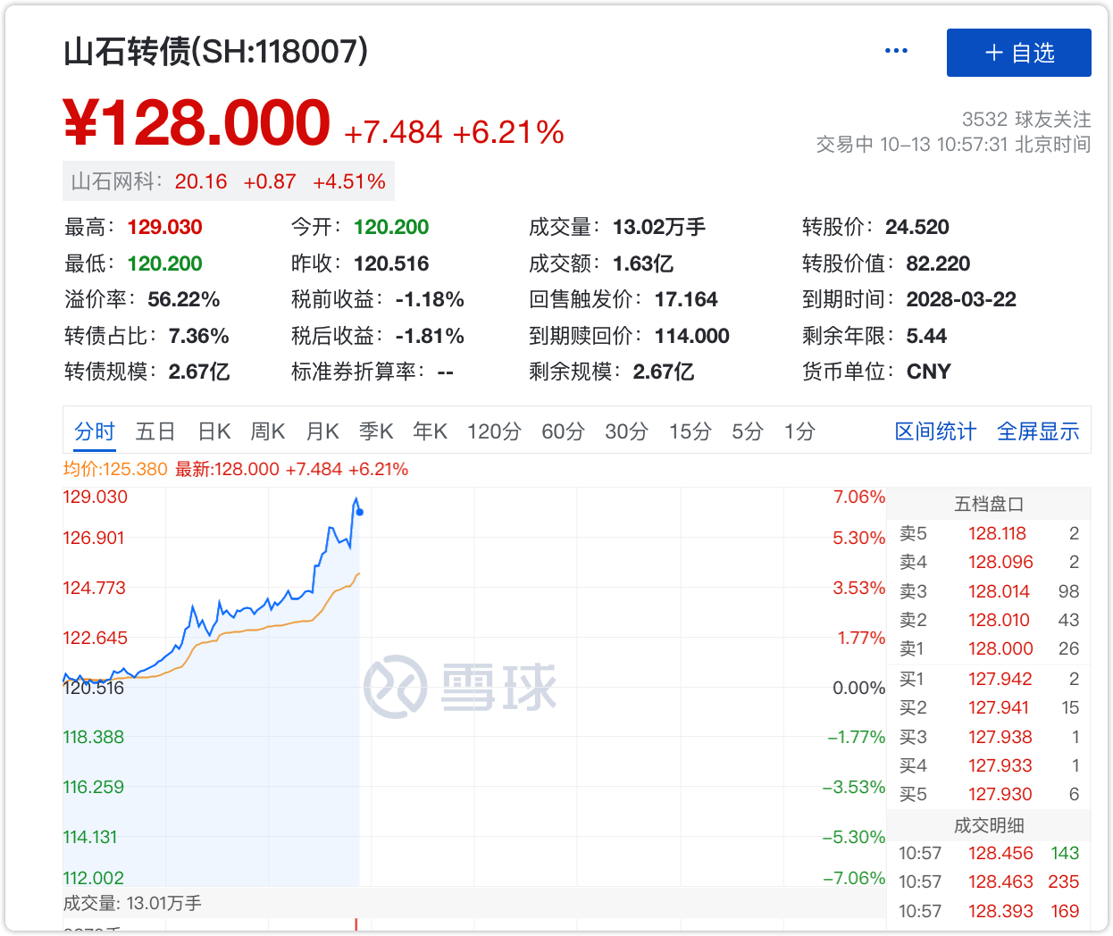 3、山石转债减仓,之前最低跌到过116.9元左右进入三低名单,今天盘中突然起飞;
