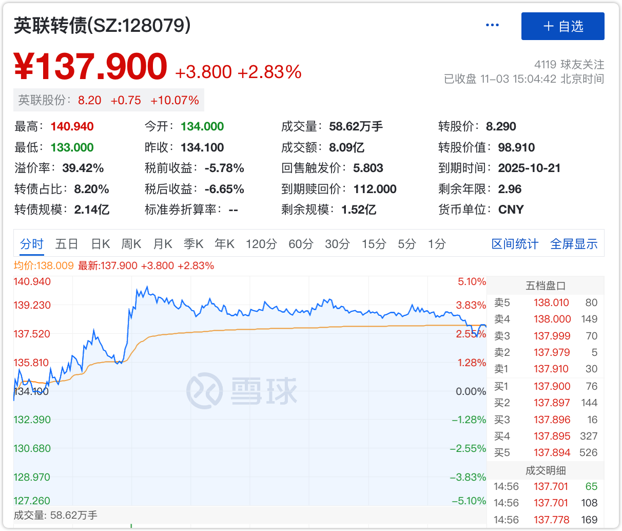 英联股份今天继续涨停,140左右把剩余部分全部止盈了,尾盘看正股封单量不大,明天大概率封不住了,后面跌下来会再考虑入手。
