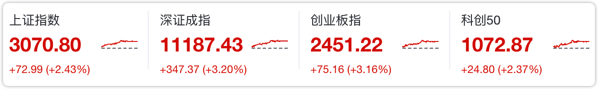 今天四大指数高开高走,全部大涨!