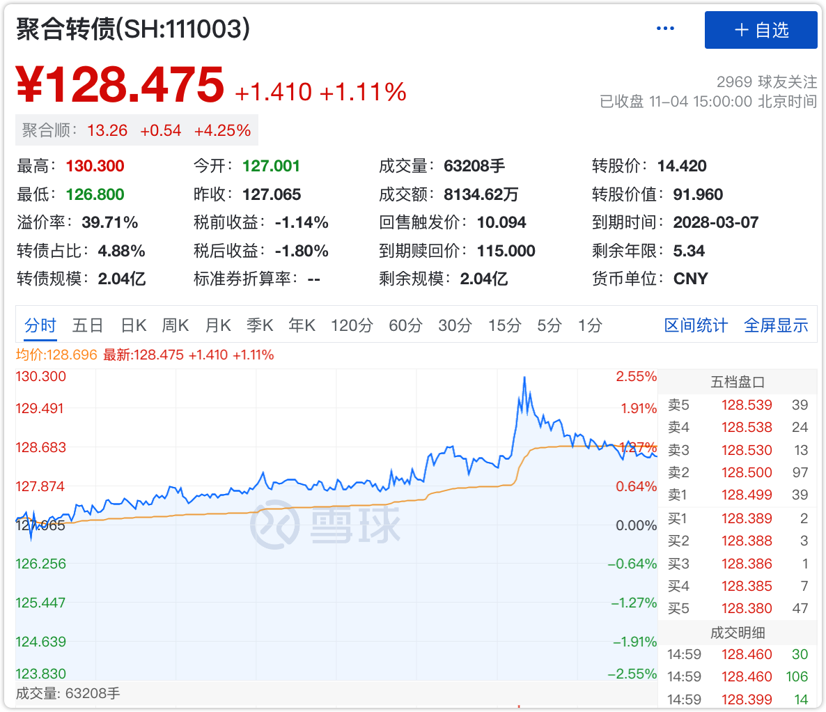 10月28的文章:建仓这2只转债,子弹快打光了,124元建仓了聚合转债,今天下午突然脉冲到130元以上,止盈了一点,下周如果还在130元以上会考虑继续接回来。