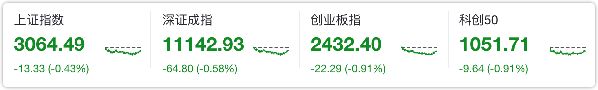四大指数今日全绿,行情比较平淡。