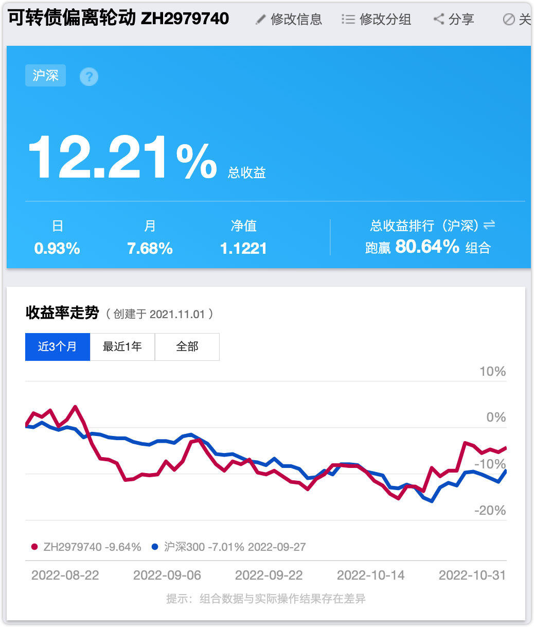 组合本周收益-1.23%,当前累计收益+12.21%。