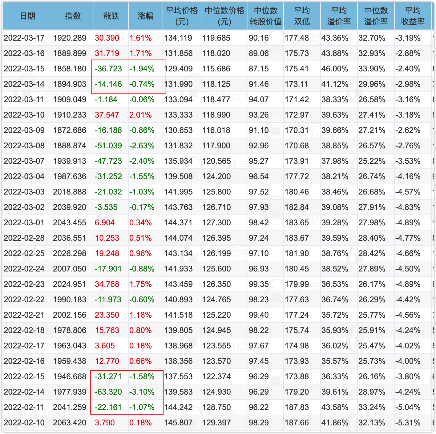 话说,今天三大指数仅仅微绿,但可转债等权指数却继续大跌-1.22%,转债溢价率进一步被压缩,平均溢价率43.65%,创今年4月份以来新低。