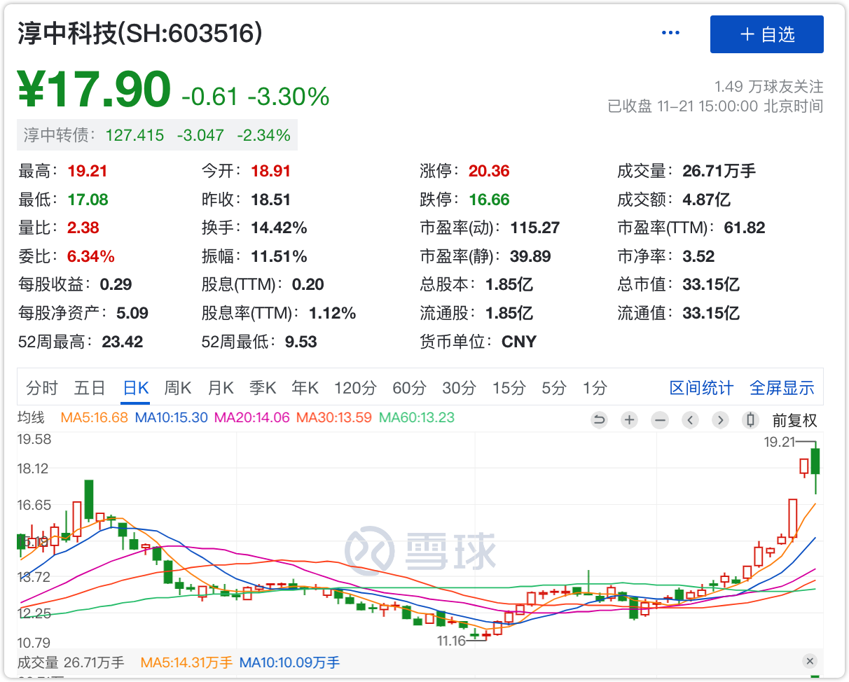 今天正股淳中科技果然高开低走,收盘跌幅2.34%,转债也跌下来了。