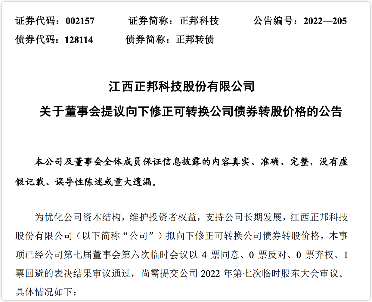 正邦转债,今晚公告了董事会提议下修。