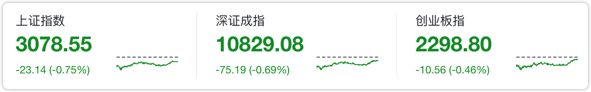 今天的行情很环保,三大指数都绿绿的。