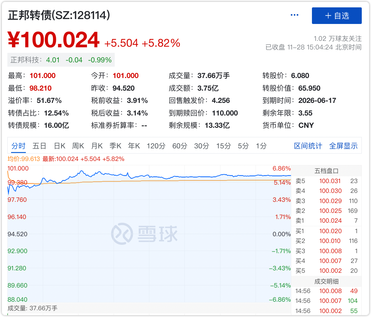 原本预估今日至少能冲高到103-105元,但是没想到开盘价101元就是今天的最高价了。