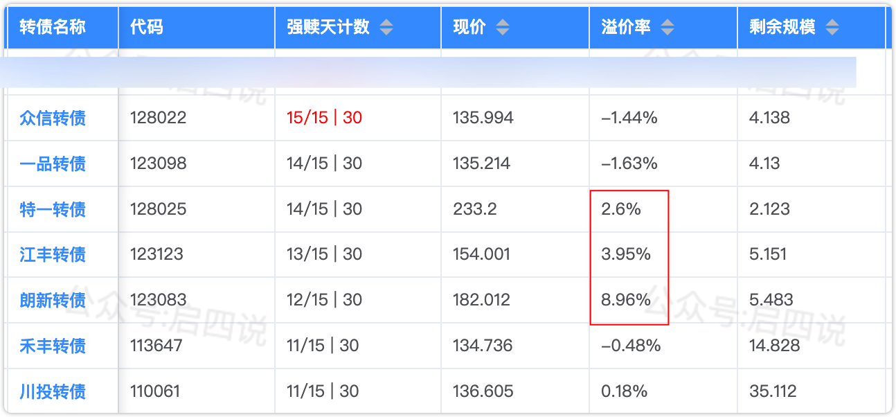 需要重点关注,谨防强赎杀溢价。