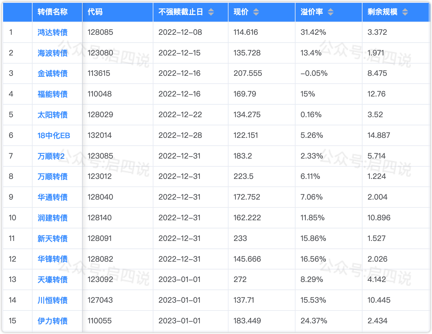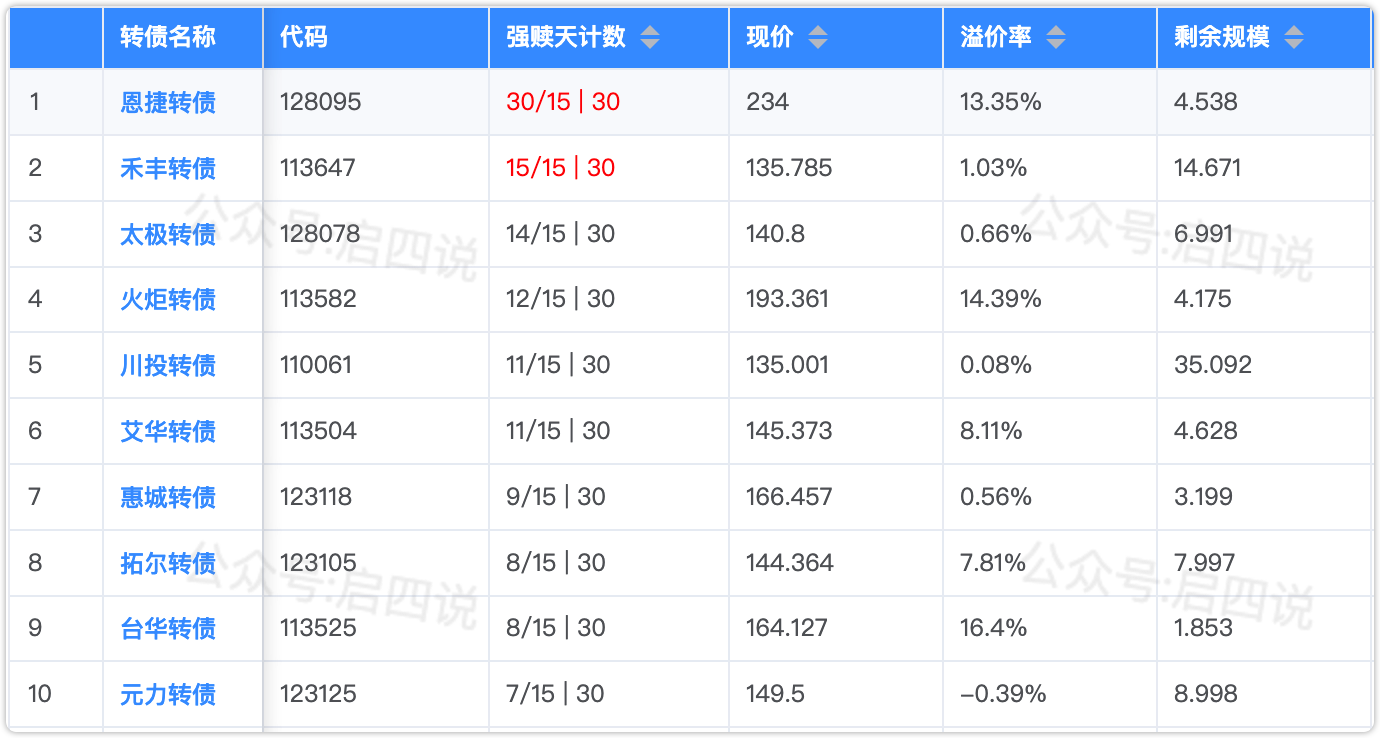 下面是已公告强赎、即将满足强赎、公告不强赎的转债。