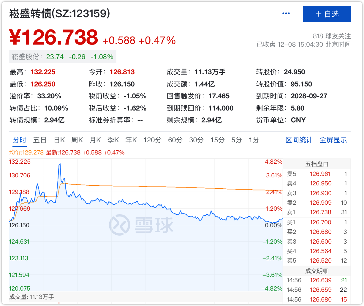 4)操作建议:如果中签,建议首日卖出,设置回落条件单+止损条件单,基准价126元,回落0.5%/止损条件0.5%,买三价卖出。