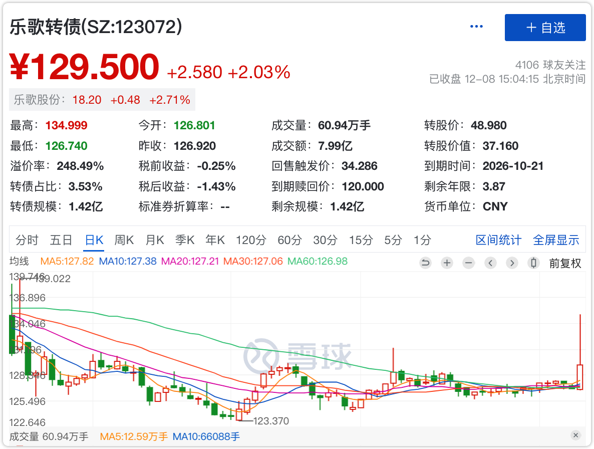 乐歌转债,我之前写过它不下5次了,作为重仓的妖债,反复薅过多次羊毛。