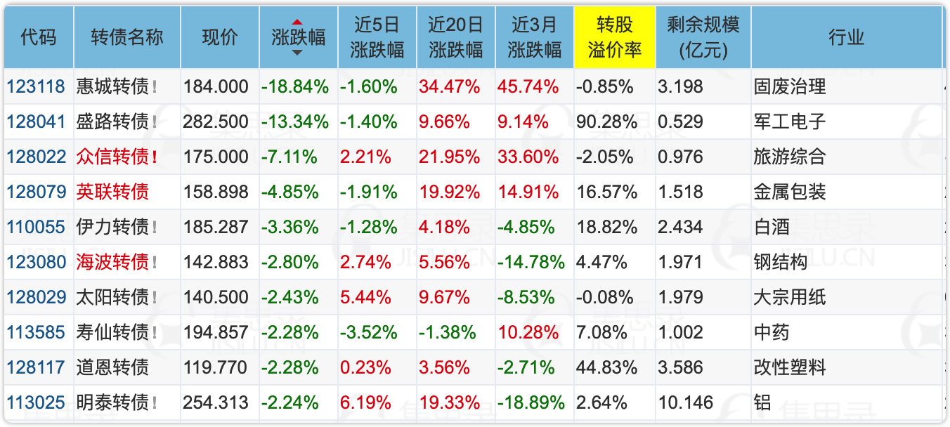 惠城转债是正股回调,盛路转债则像是庄家控盘,溢价率之前被大幅拉高,现在又被大幅打压。